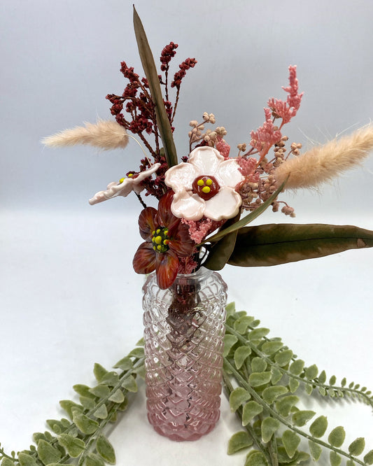 Dusklight Trio — Ivory, Dusky Pink & Lilac Glass Flowers with Dried Flowers