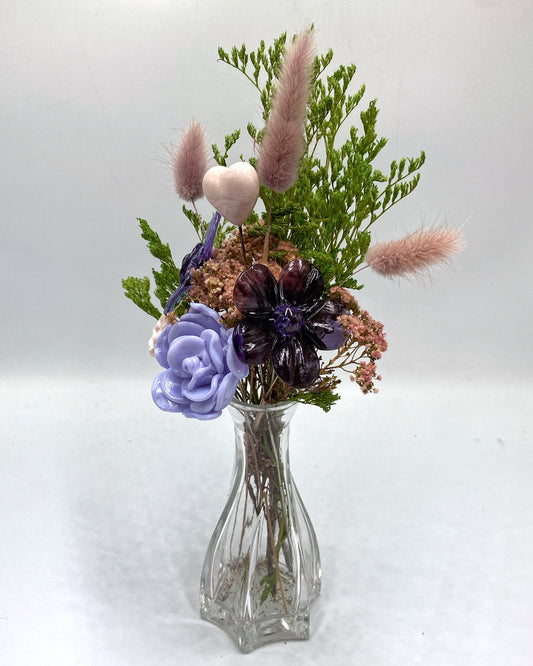 Lilac Crush Valentine Glass and Dried Flower Vase