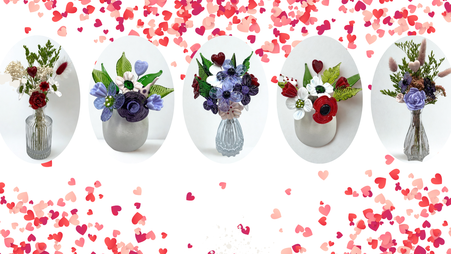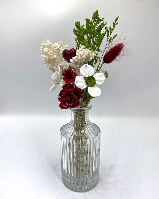 Love in Bloom Valentine Glass and Dried Flower Vase