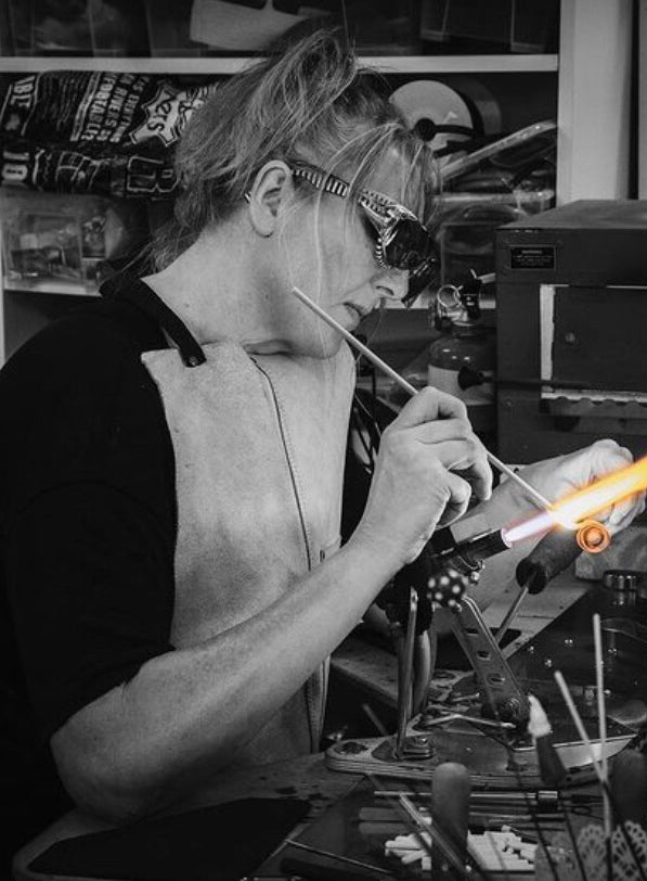 From our flame-lit studio in Perth, Western Australia, we use the ancient art of lampworking and colourful glass to create one-of-a-kind pieces and limited collections. Every stem and element is shaped by hand, crafted for women who want something truly unique — unapologetically bold and beautifully individual.