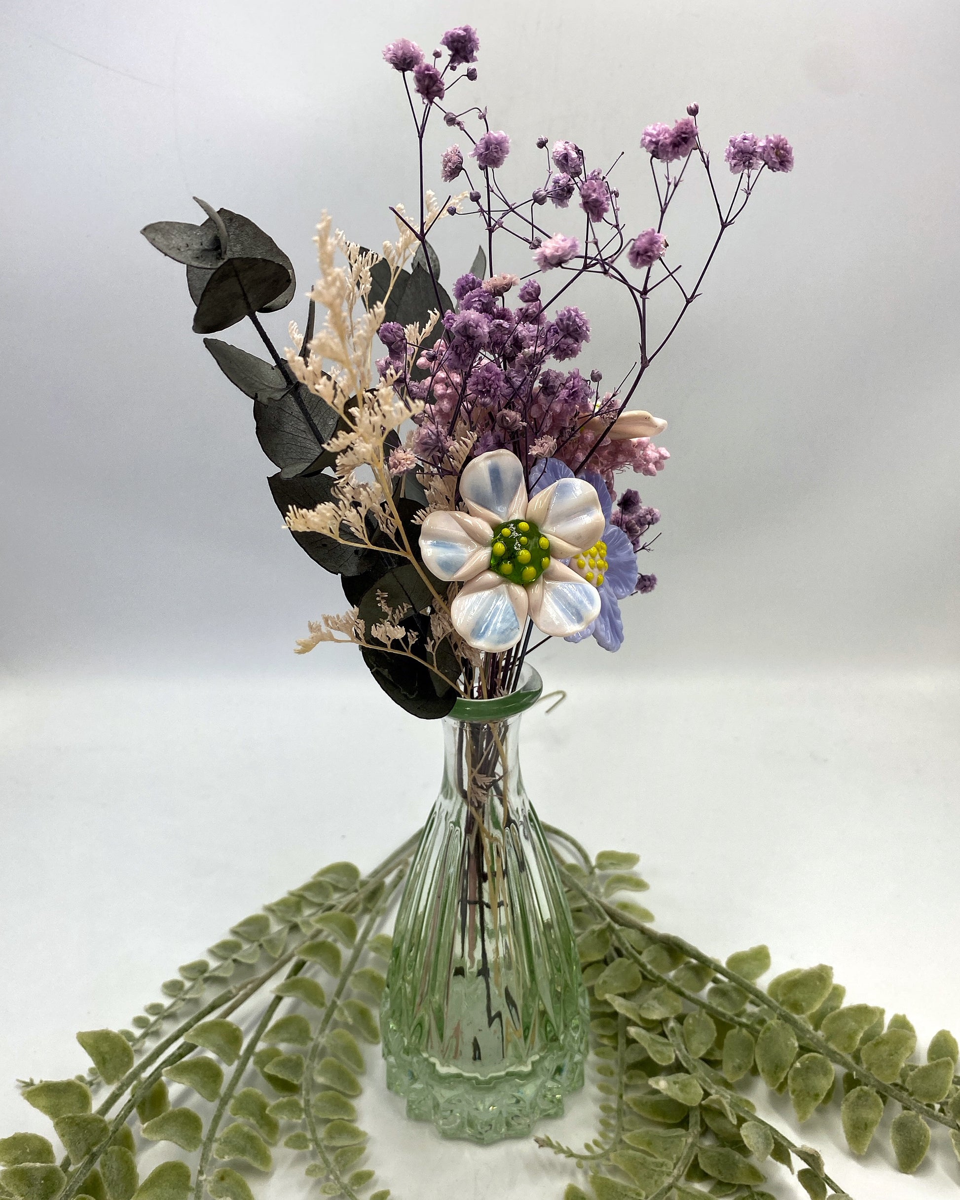 Pastel Bloom Trio Glass and Dried Flower Vase